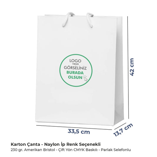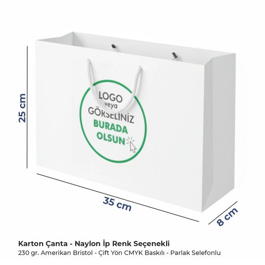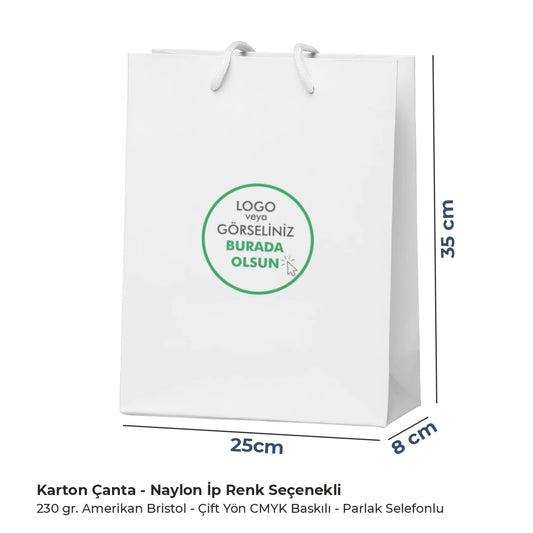 Karton çanta yapımı, profesyonel üretim teknikleriyle, kaliteli malzemeler kullanılarak yapılmalıdır. Üretimde en çok tercih edilen karton çeşidi olan amerikan bristol ile, dayanıklı ve estetik görünüm sunan karton çanta sipariş edebilirsiniz. 20 kg taşıma kapasiteli özel ölçülerde üretilen çantalar, dayanıklılığıyla uzun süre kullanım sağlar.Karton çantalar; sadece ürünleri taşımak için değil, aynı zamanda algıyı yükseltecek bir marka takviyesi olarak tasarlanır. Bu nedenle çantanın her detayı önemlidir: