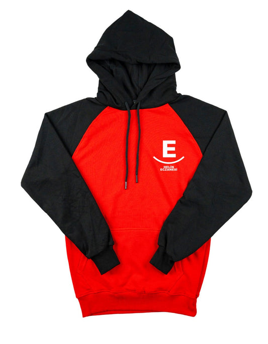 Baskılı Reglan Gövde Kapüşonlu Sweatshirt Kırmızı - 3 İplik Şardonsuz