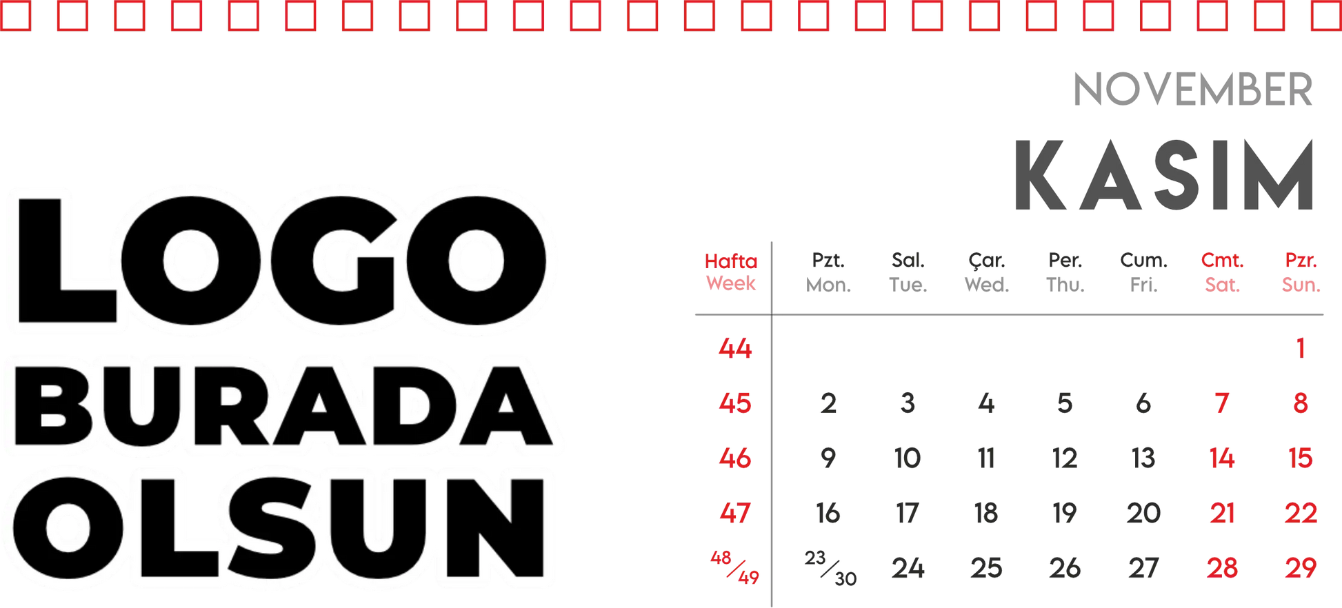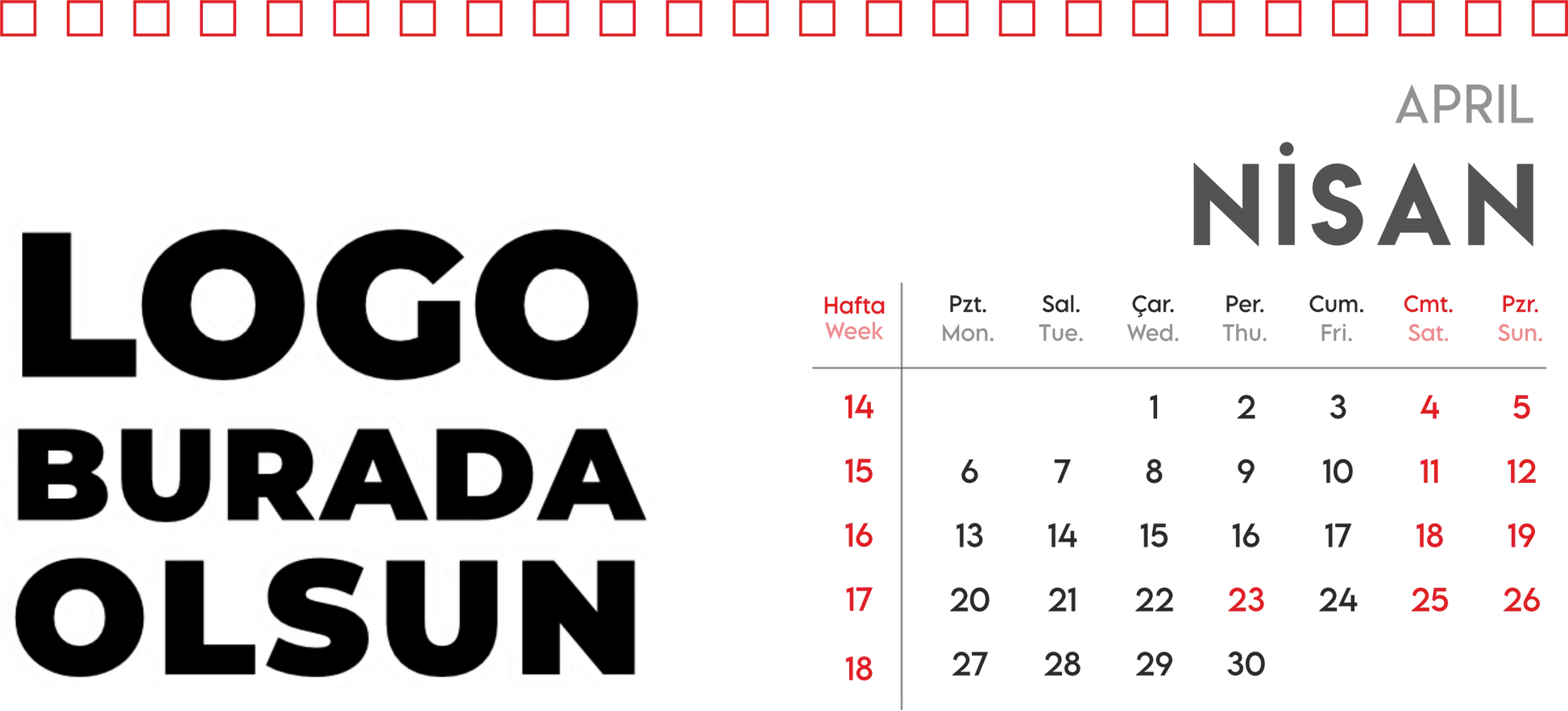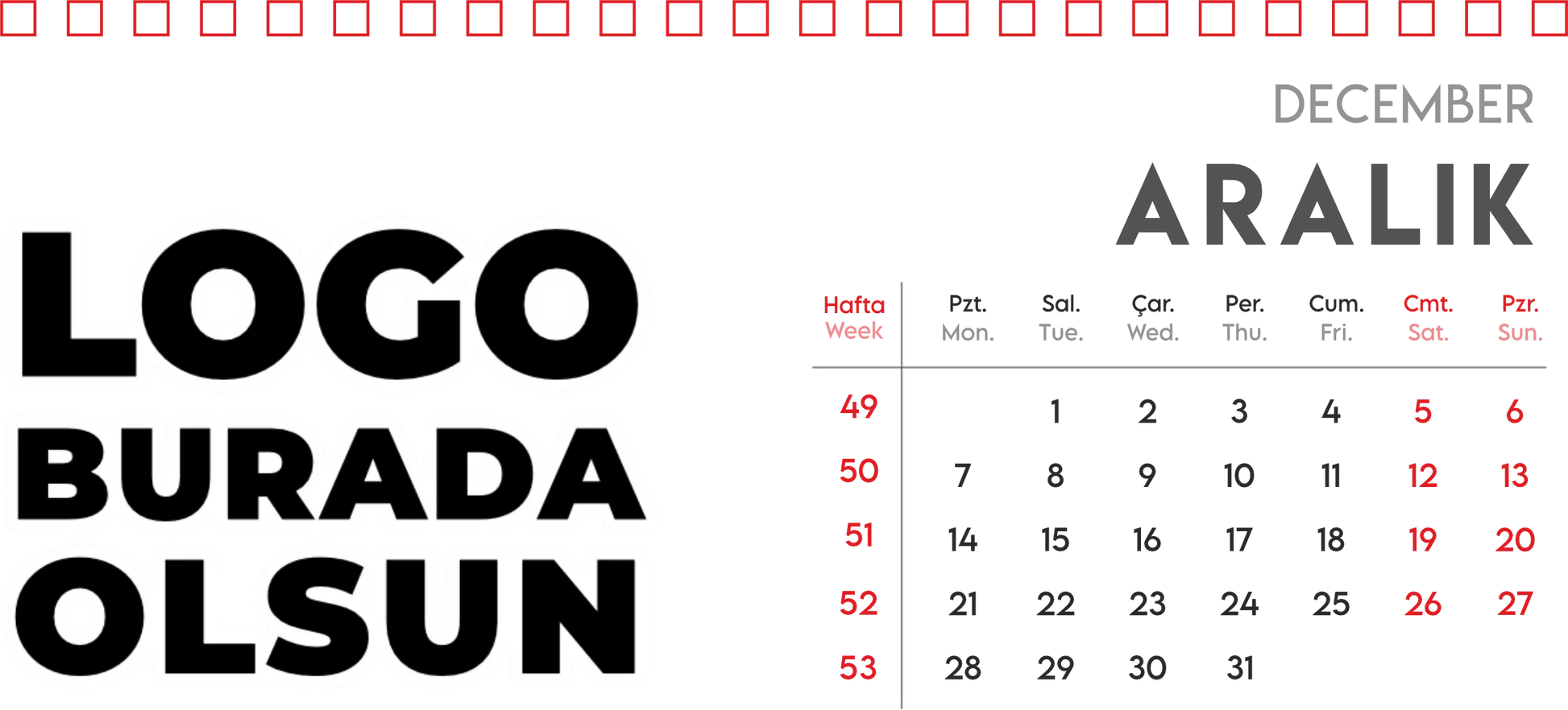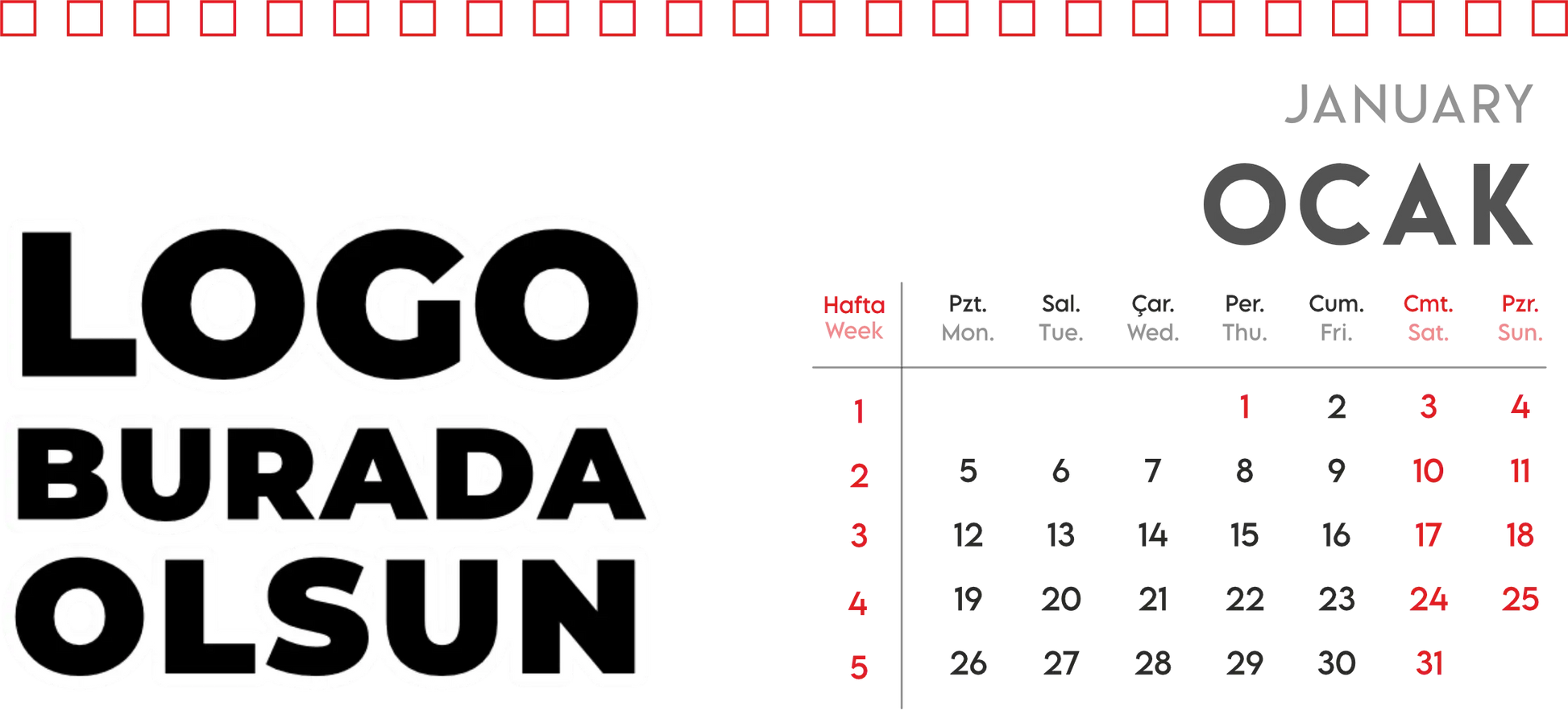 Masa üstü takvim - spiralli model, çalışma alanında düzen ve estetiği bir arada sunmak isteyenler için vazgeçilmez bir üründür. İster evinizde ister ofisinizde kullanın, spiralli masa takvimi sayesinde günlerinizi, haftalarınızı ve aylarınızı daha verimli planlayabilirsiniz. Kolayca çevrilebilen spiralleri, her sayfada güncel tarih bilgisi ve not alanları sunarak yoğun tempoda bile kontrolü elinizde tutmanıza yardımcı olur. Üstelik özel tasarımlarla kişiselleştirilebilir olması, markanızın veya kişisel zevklerinizin ön plana çıkmasına da katkı sağlar.