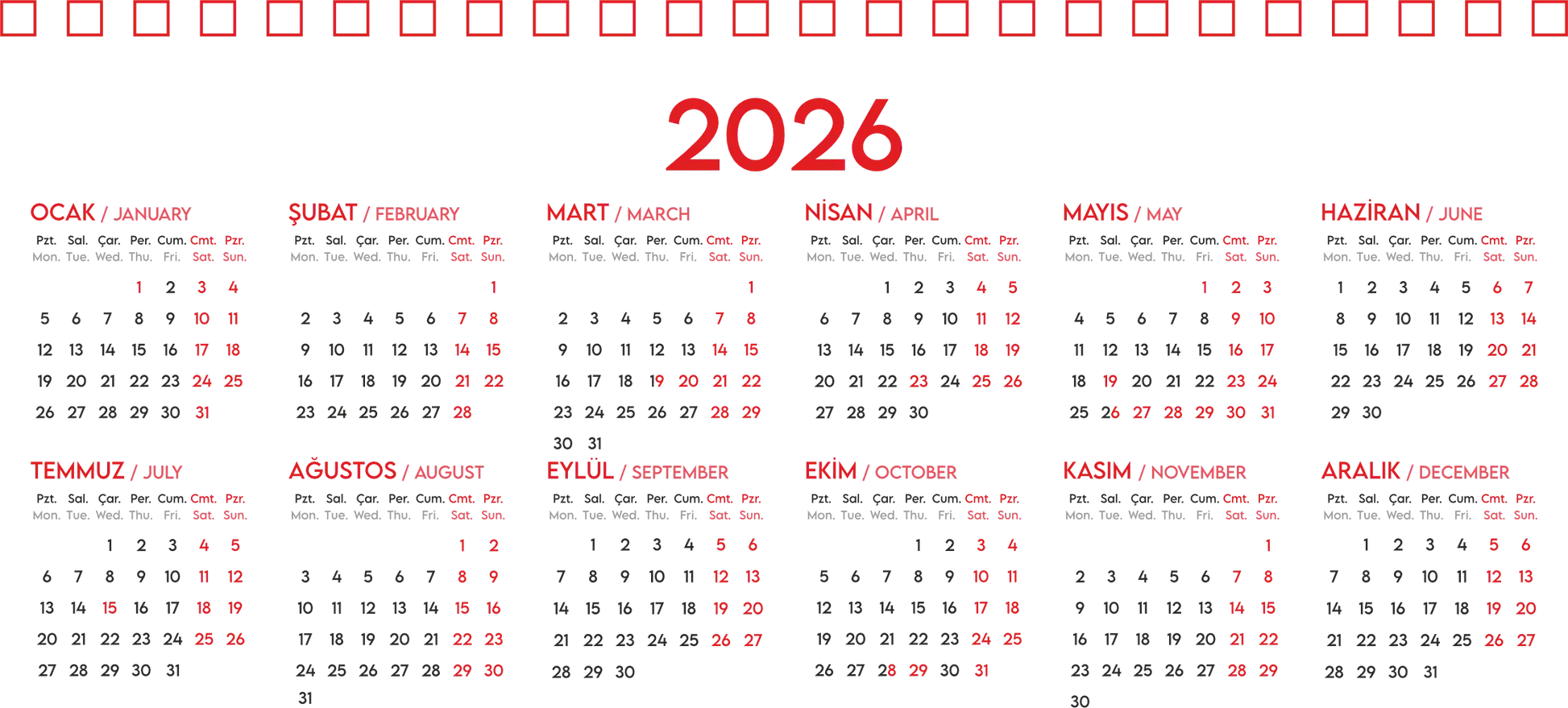 Spiralli Masa Üstü Takvimi