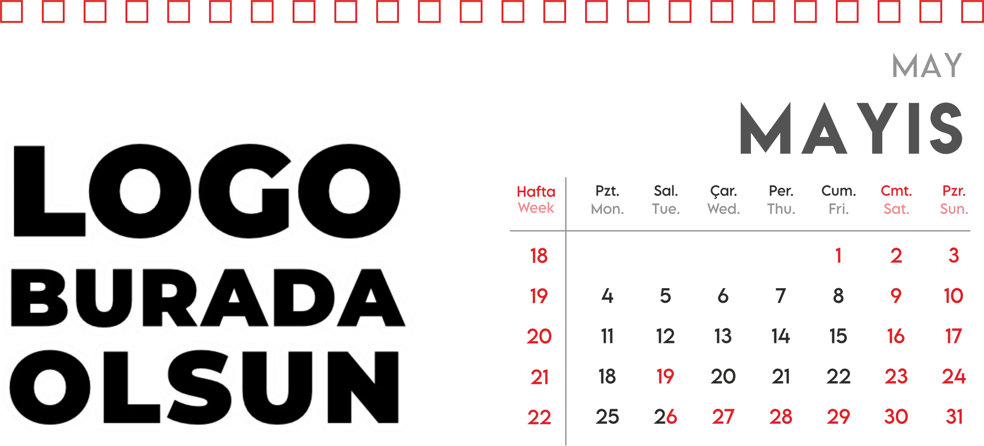 - Ölçüler: Ön ve arka yüzey 19.5 x 13 cm, takvim yaprakları 19.5 x 9.5 cm.