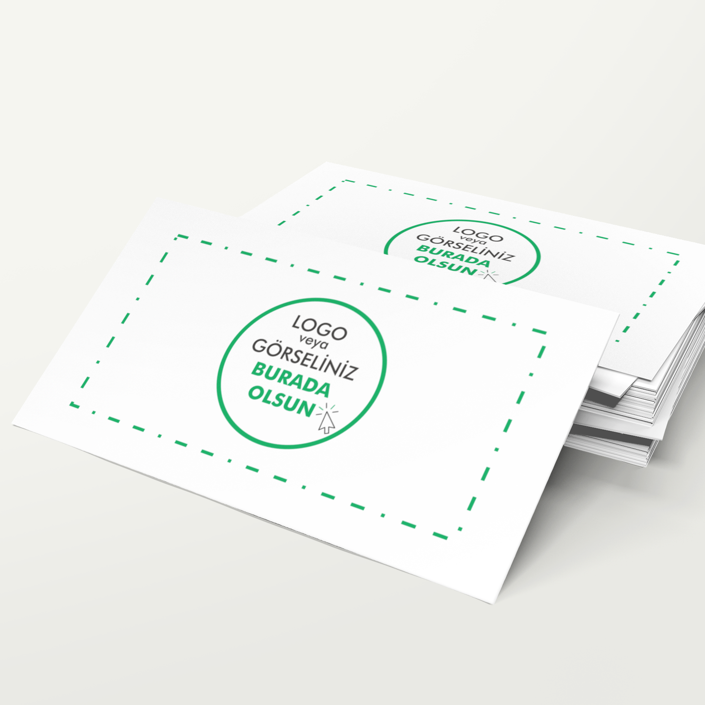 Tasarım: Logonuzun boyutlarına ve özelliklerine dikkat edin. Düz kesim için güvenli alan 7,8 x 4,6 cm kabul edilmektedir. Logonuzu ve yazılarınızı güvenli alana ekleyiniz.