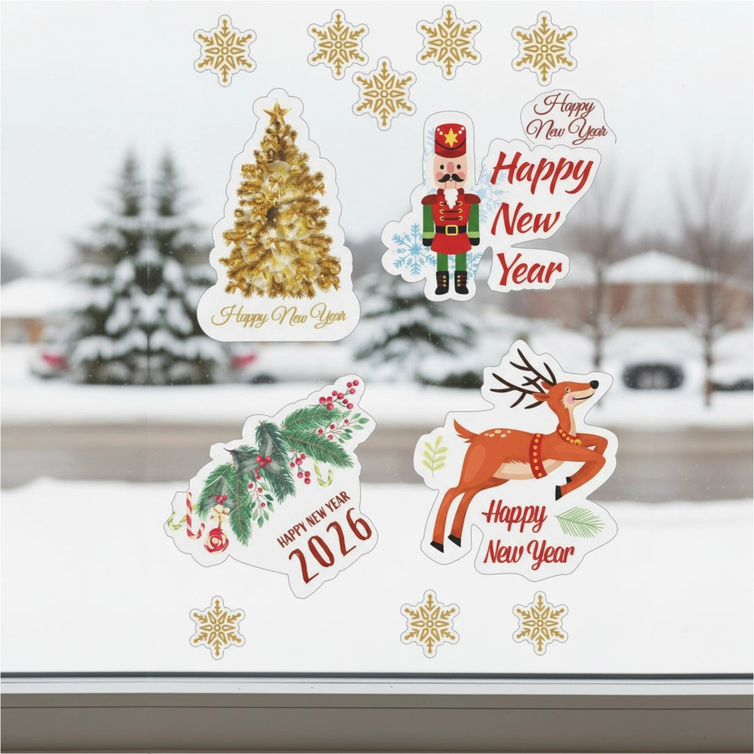Yılbaşına Özel Sticker – Su Geçirmez, Dayanıklı Cam & Duvar Yılbaşı Süsleri