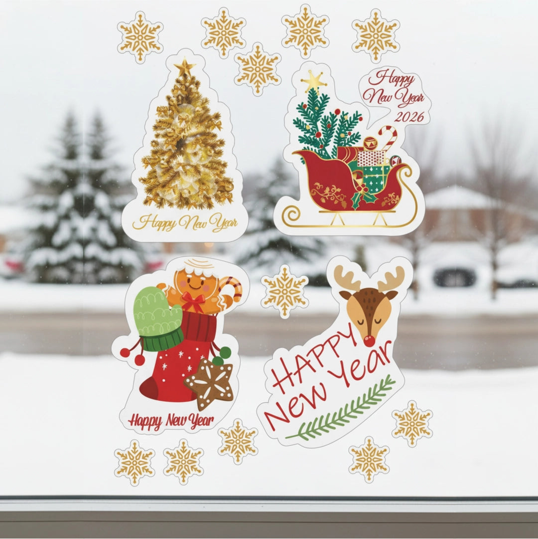 Yılbaşına Özel Kesim Sticker – Su Geçirmez, Dayanıklı Cam & Duvar Yılbaşı Süsleri